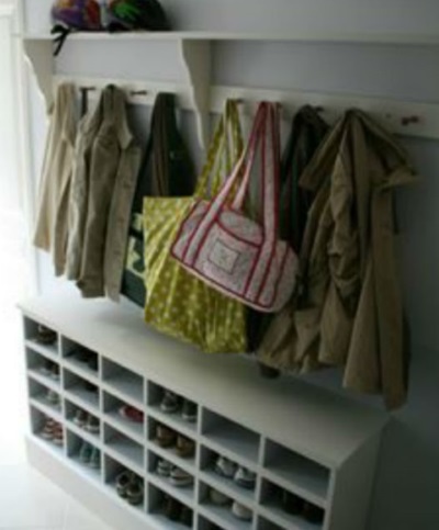 Sol, murs et plafonds sont les solutions les plus communes pour y accrocher des tablettes, étagères etc. Mais pourquoi se priver de l’espace présent dans les angles de l’entrée ?